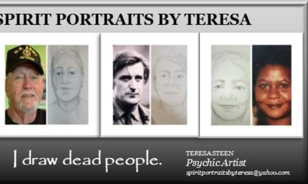 One day ten years ago Teresa was led to draw her first Spirit Portrait. After much practice and research she began making her Spirit Portraits available both remotely and in person by traveling across the country.